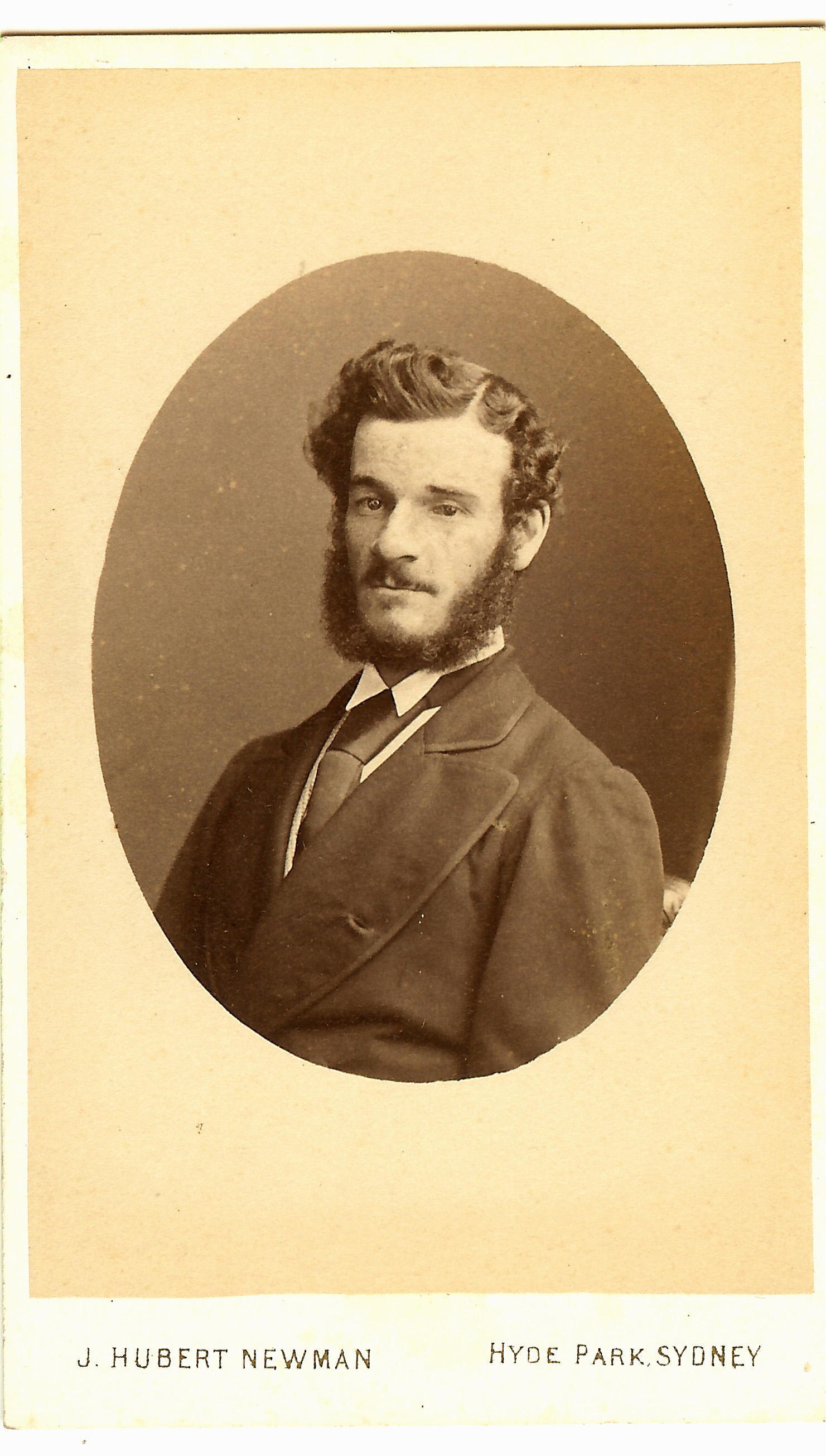First mention that we have been able to locate of William Francis Roberts as a photographer operating in Newcastle, is in an 1876 advertisment for the City Photographic Company, Hunter Street Newcastle, where he describes himself as “Photographer to H.R.H. the Duke of Edinburgh and His Excellency the Governor. – “Advertising” Miners’ Advocate and Northumberland Recorder (Newcastle, NSW : 1873 – 1876) 1 January 1876: 9. Web. 20 Jan 2017 <http://nla.gov.au/nla.news-article141049333>. By 1879, he was senior partner of the photographic firm Roberts, Richards & Co., in Sydney, but we’ve been unable to locate clear evidence of his advertised activities as a photographer in Newcastle, except for a mention in 1888 that he, as part of “Roberts & Co. Newcastle” had taken photographs of the wreck of the Susan Gilmore, which washed ashore near Shepherd’s Hill in 1884. – “WRECK OF THE SHIP BERBICE AT NEWCASTLE.” Newcastle Morning Herald and Miners’ Advocate (NSW : 1876 – 1954) 6 June 1888: 5. Web. 20 Jan 2017 <http://nla.gov.au/nla.news-article135922106>. Given the description, we would date the image on the unidentified bearded gentleman to circa 1876.