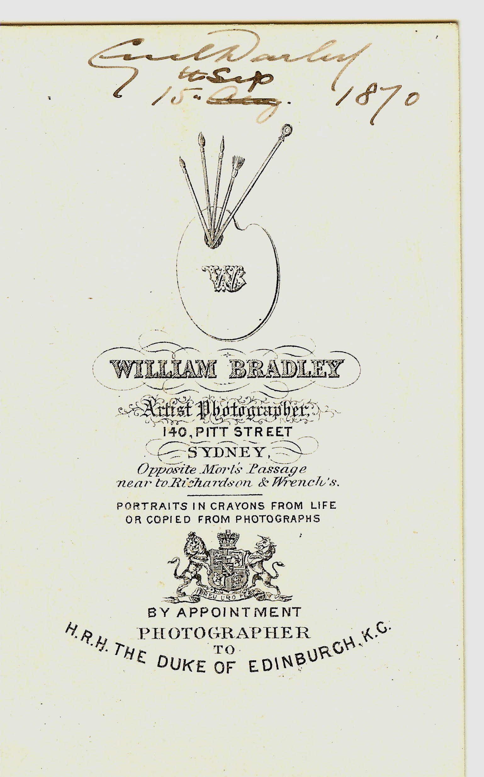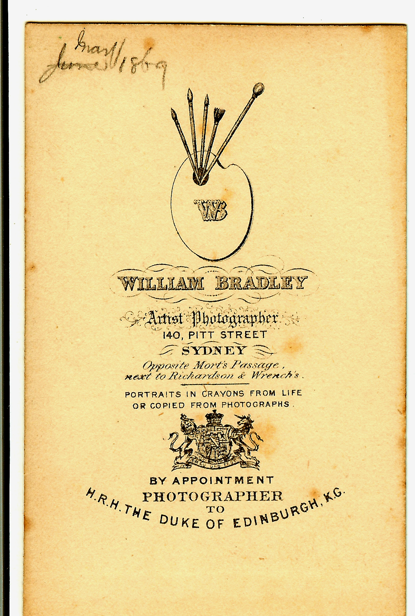 “Wingate married Eleanor (Rouse) (formerly Terry) in 1856. He was a sketcher, amateur photographer and army officer. He would have been one of the earliest photographers in Sydney, so some of the photographs we possess could well have been his. As to which ones – who knows? One of the albums appears to have belonged to Lucretia Fletcher’s daughter – also Lucretia who married Alexander Glennie.” – Email from Anne Glennie to Gionni Di Gravio Monday, 19 September 2016 2:17 pm)
