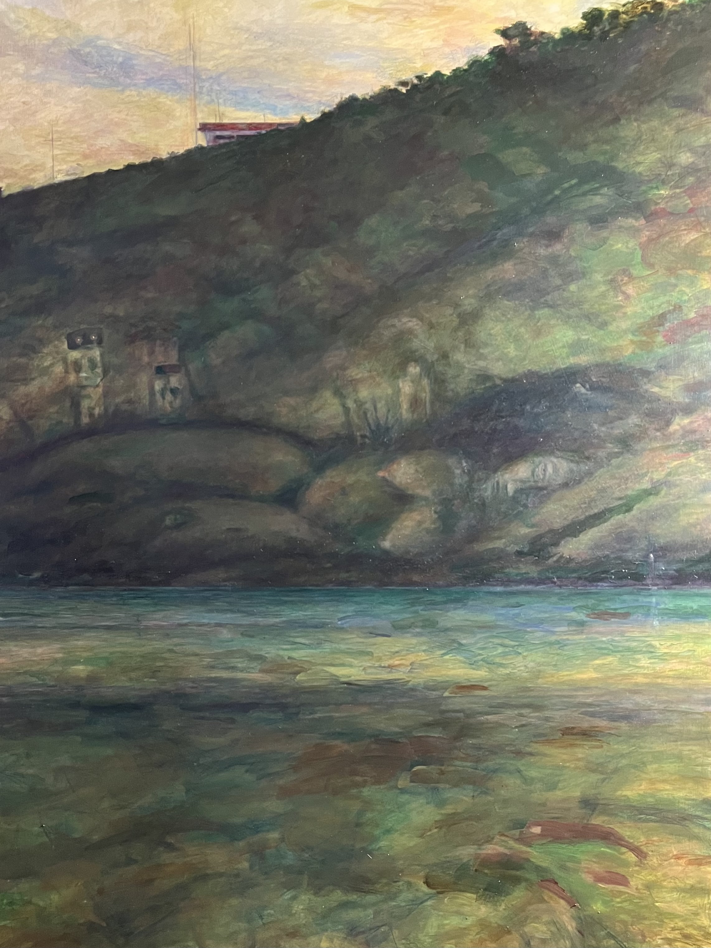 Long term Lake Macquarie resident and artist, Douglas Vooby, kindly sent us in this painting inspired by the historical accounts compiled above. The painting is titled “The Stone Sisters and the Birthing Cave.” He sent it by email on 5 December 2025.