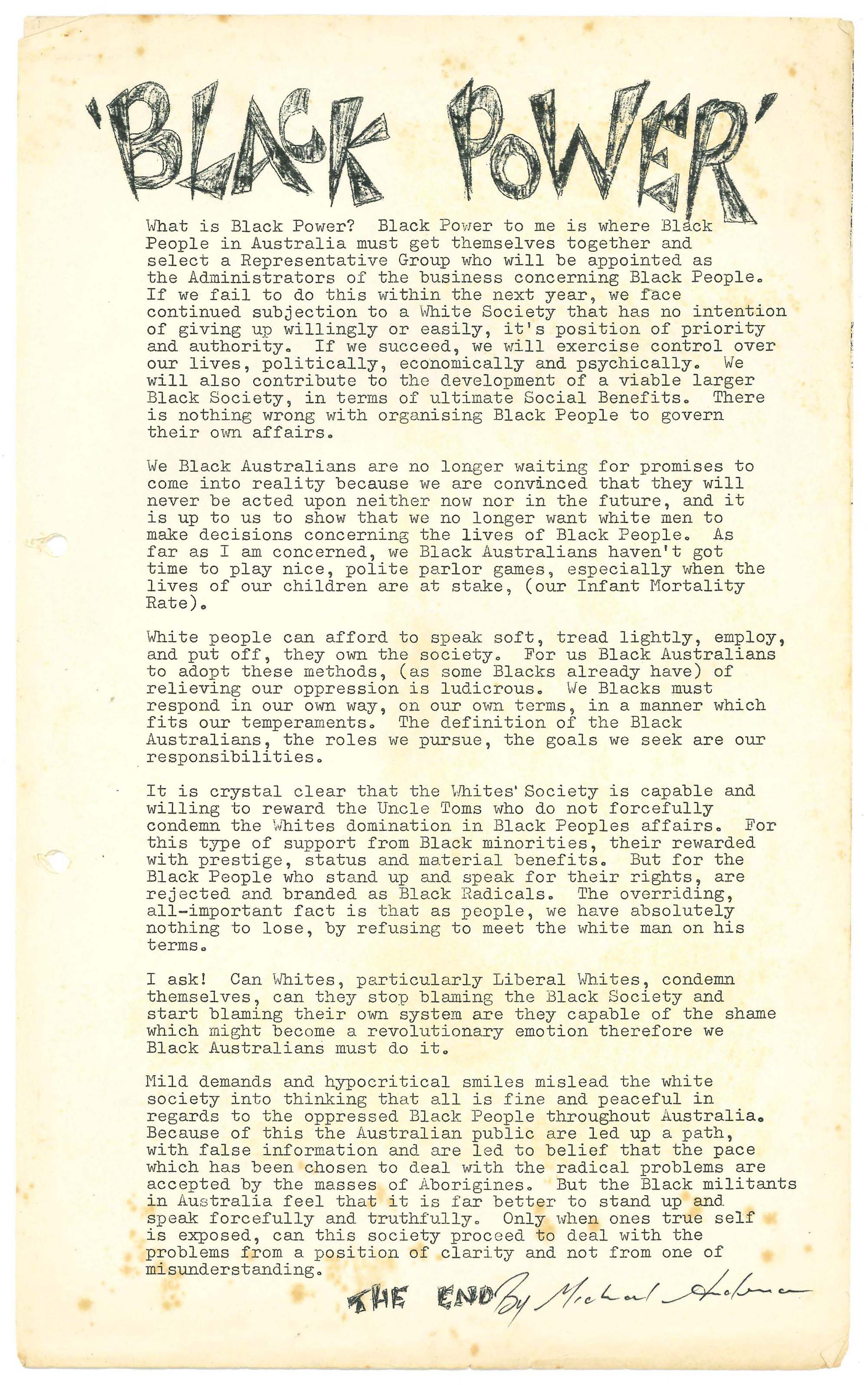 C4313 (v) Correspondence, papers, articles and reports on the origin of racism in Australia, including Black Panther Party Australia platform and program; ABSCHOL minutes; Newcastle Symposium on Racism held April 15-16, 1972. File date range: 1968-1975 [All files were originally housed in a lever arch file labelled “Racism”]