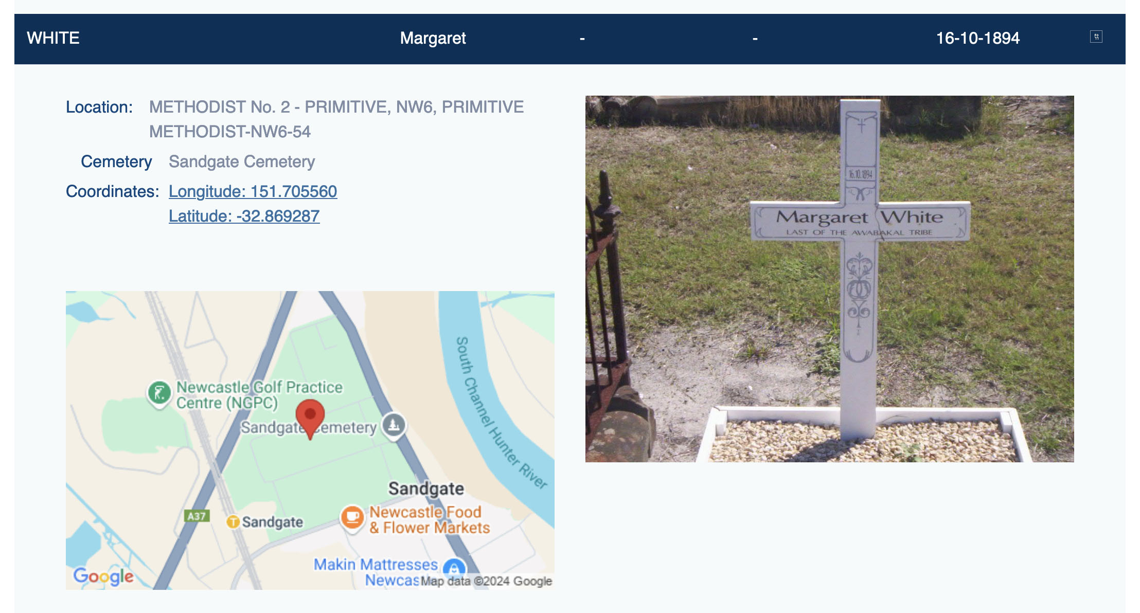 “The dwindling of the nation commenced on contact with the British, and for some years the bulk of the people were settled at Puntel (Toronto). After 1841 the remnant crossed over to Tulkaba (Swansea), and at a spot known as Kalog-gabba (“Far Away”) the exit was made. Queen Margaret, recognised as the last full-blood of the Awabakal nation, died in Newcastle Hospital, and was interred at Sandgate (Newcastle District General Cemetery).”