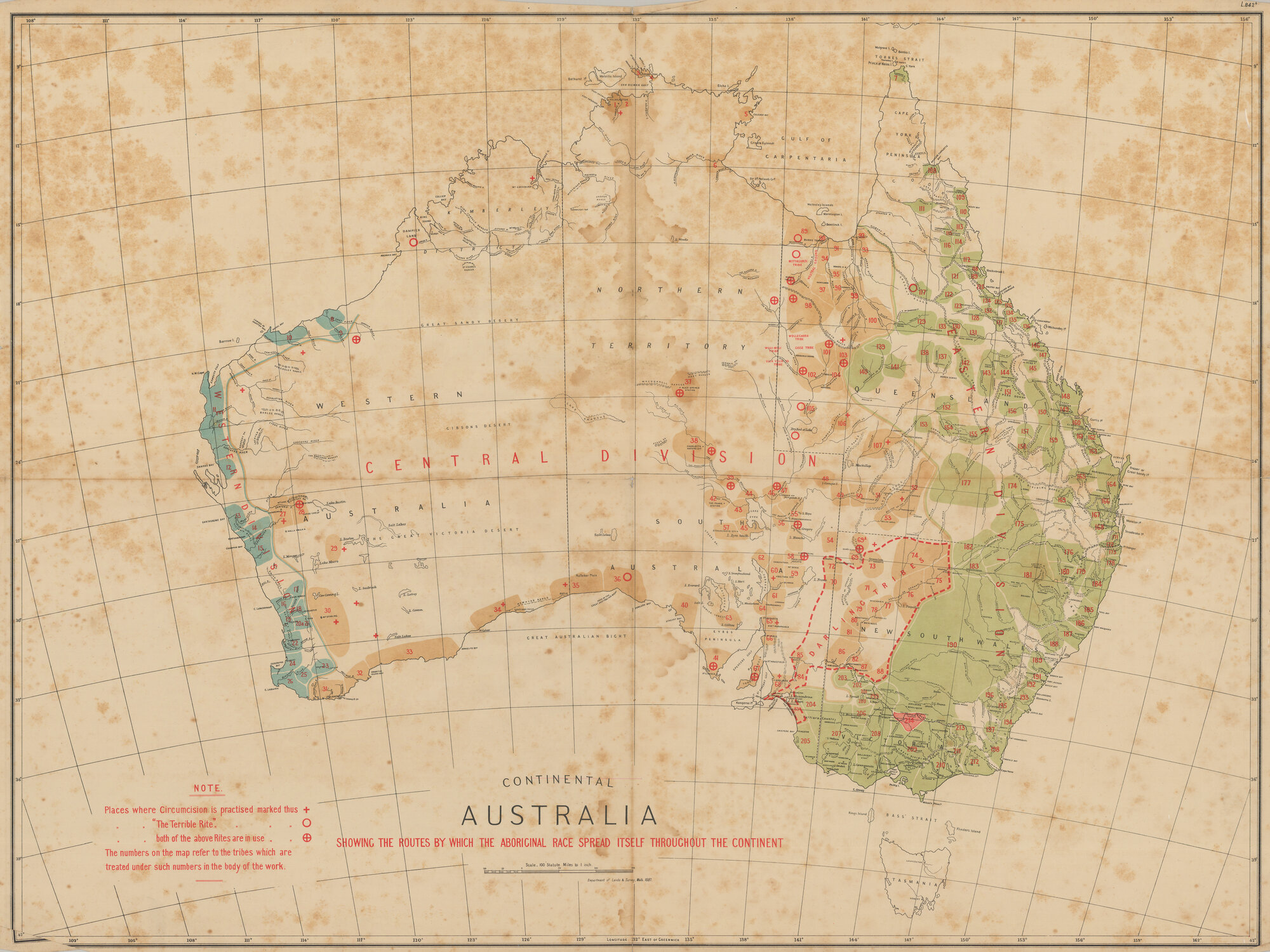 Continental Australia showing the routes by which the Aboriginal race spread itself throughout the continent, 1887
