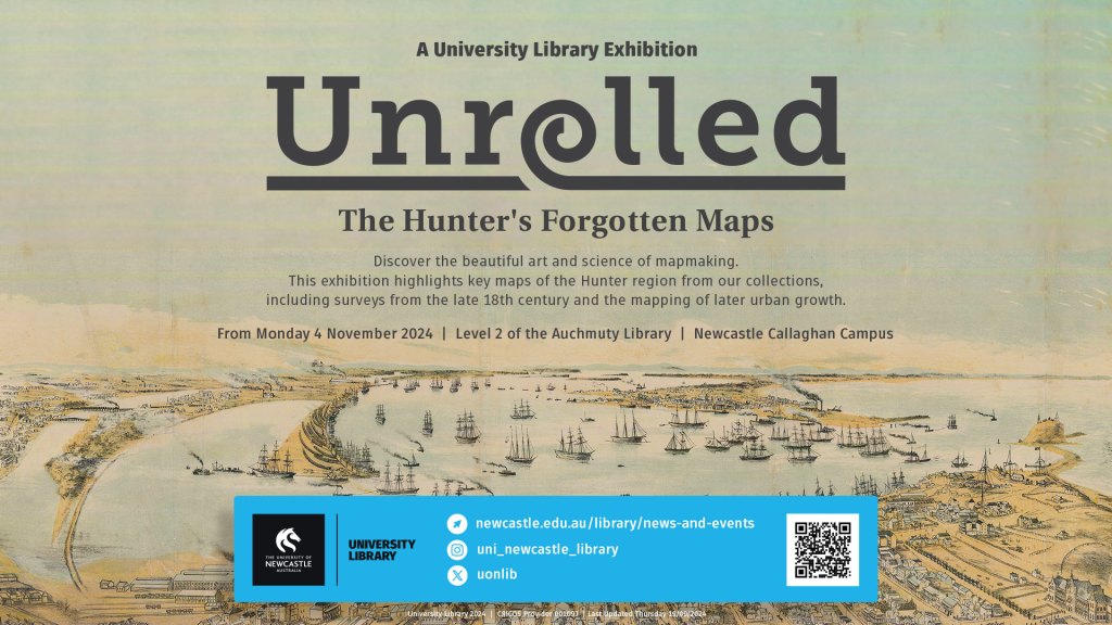 - “Unrolled – Maps of Newcastle and the Hunter Region currently on at Level 2, near Special Collections.