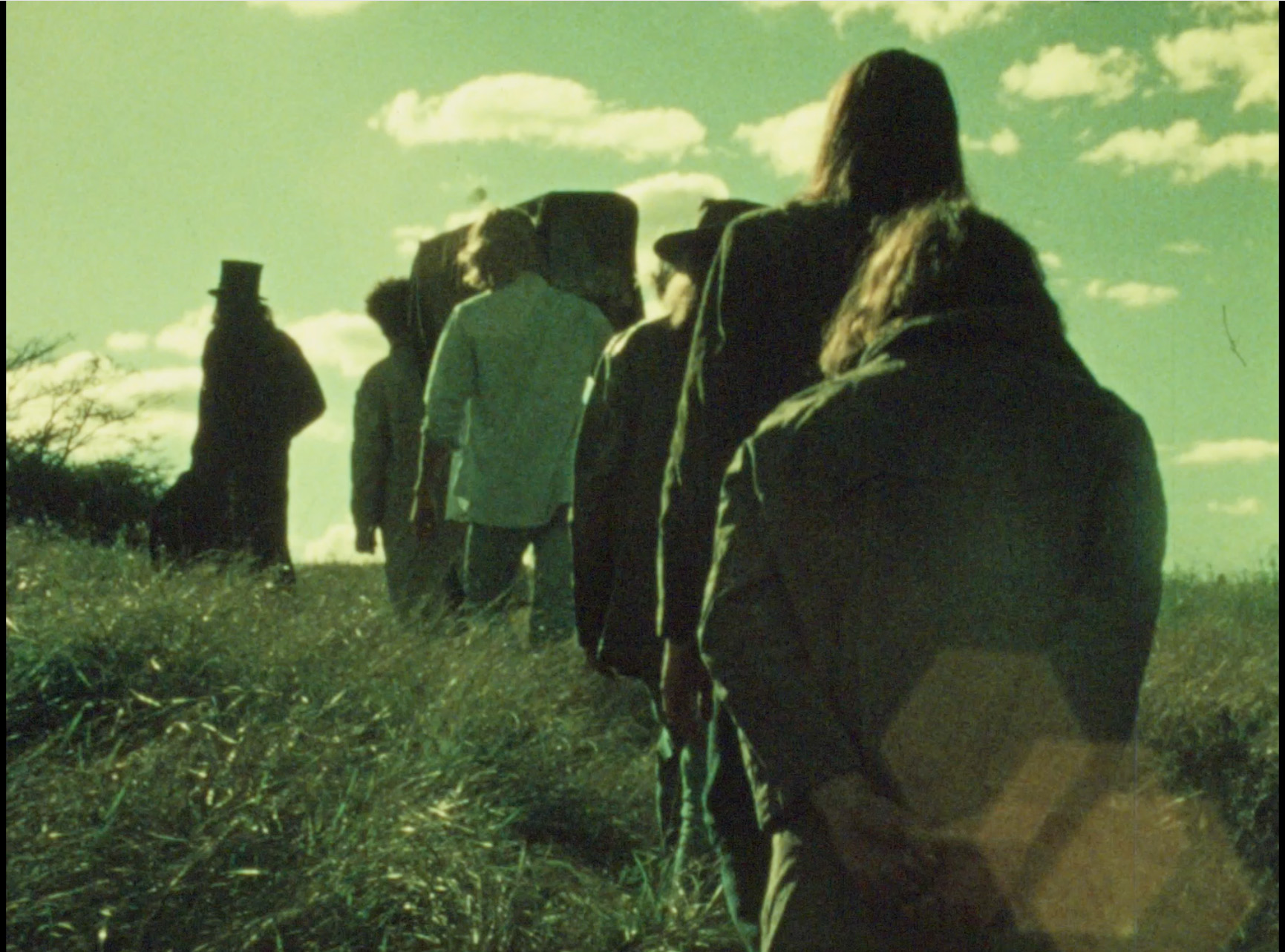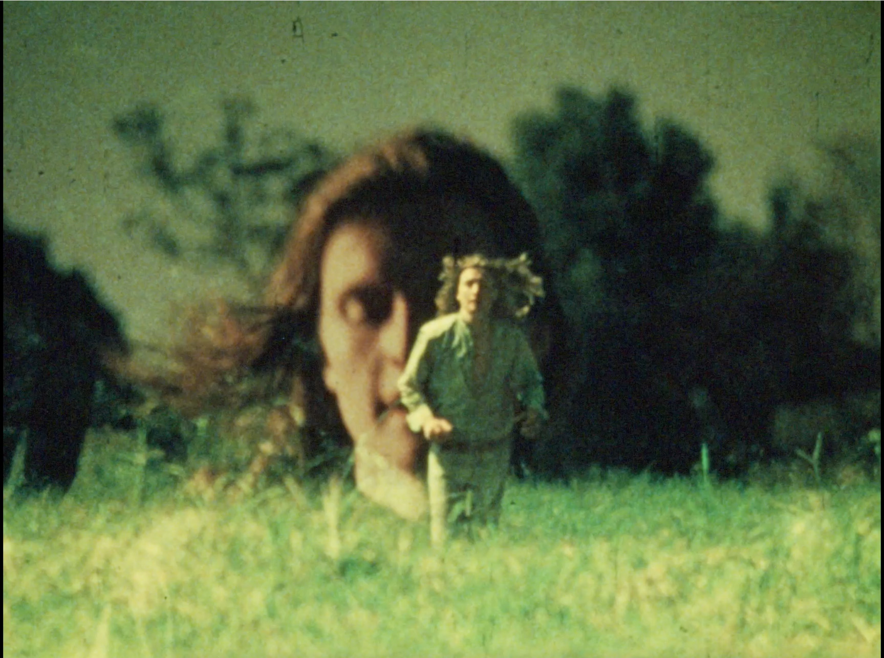 “It’s a bit” dull talking about it like this but the ‘plot’ concerns a Boy from a village (the film is set in peasant surroundings — 1900’s ) who has an affair with a witch girl. The townspeople call the Priest when the Boy and the Girl are discovered making love and the Boy falls into a death trance which the witches have put on him. The priest passes judgement and the Boy is placed in an open coffin and led away, through the town cemetery, into a deep gorge where he is buried alive. The last scene is of the Boy looking up to the cliffs overhead where all the witches are assembled and are looking down and laughing at him as he gets covered with dirt whilst the townspeople chant to break the curse.”