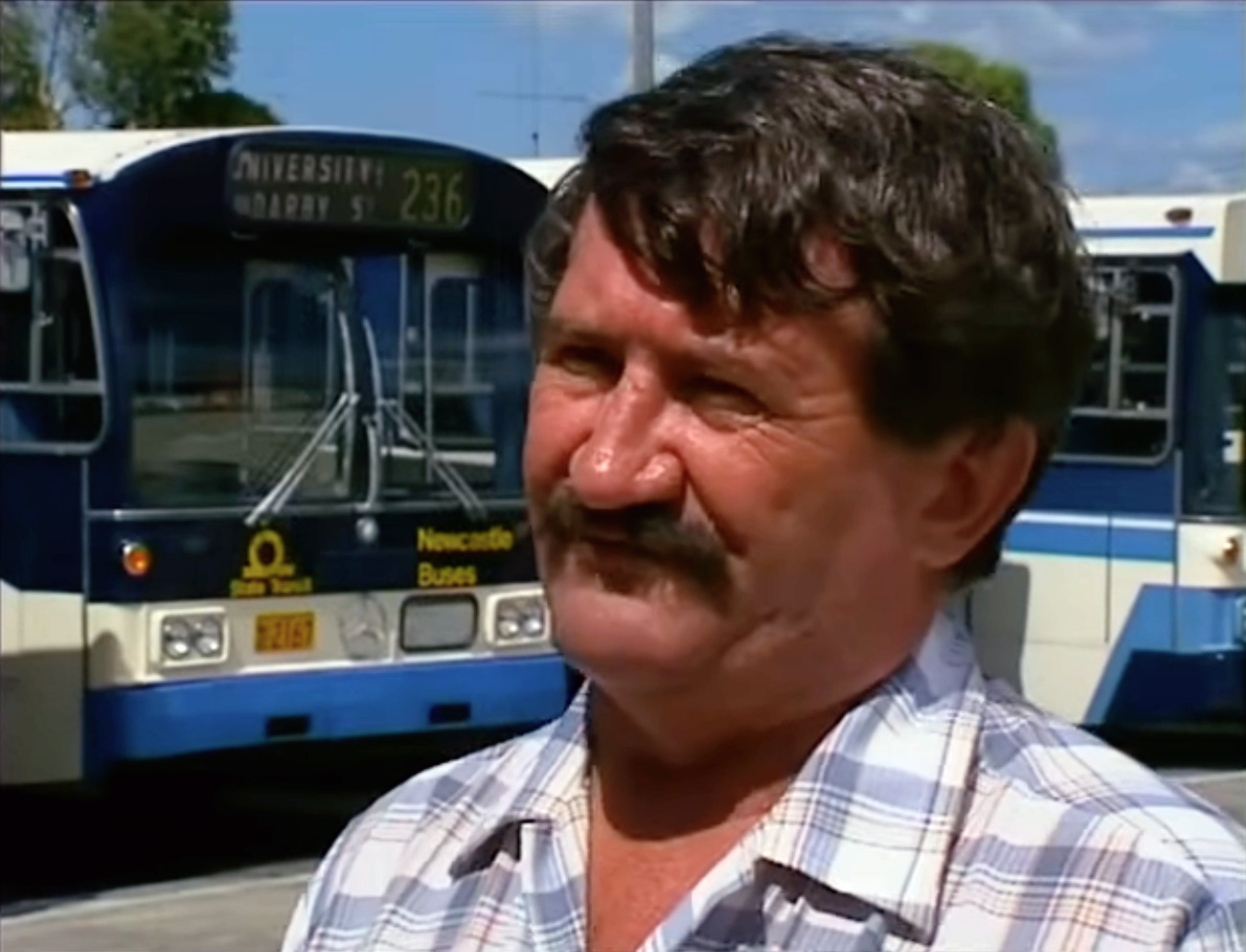 The NBN reporter, Ross Hampton, is interviewing a Union representative, Mr Don Williams. They are out the front of the Hamilton Bus Depot. The NBN Camera operator is Stuart Osland.