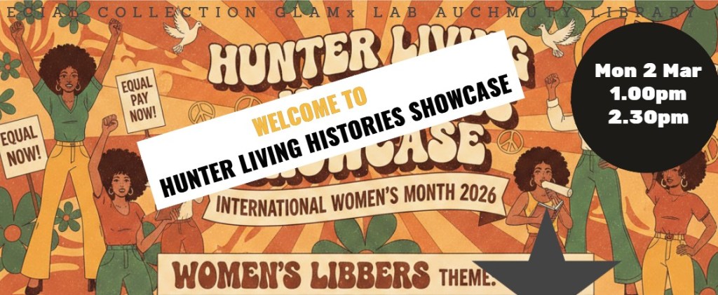 Join us at 1.00pm-2.30pm for the University Library’s monthly Hunter Living Histories showcase. All Welcome.